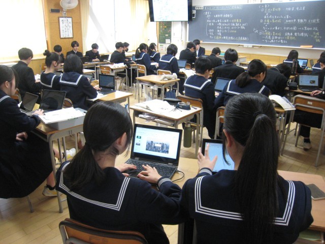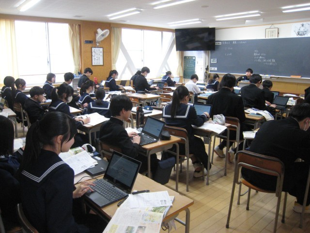 今日の2年生の3限目の授業の様子です。 2年生社会では「自由進度学習」に取り組んでいます・ 各自で関東地方の特徴等を学習し、まとめの発表をする準備を行っています。 写真は、上から1組国語、2組英語、3組数学、4組技術、5組社会、6組社会、7組理科、8組英語の授業の様子です。