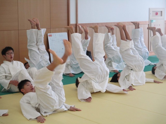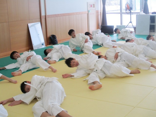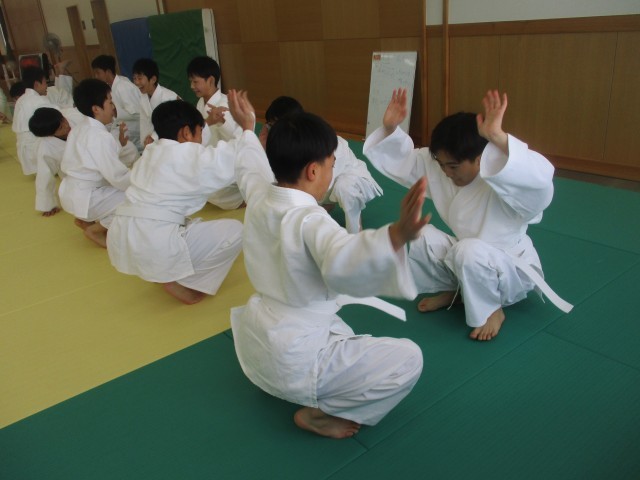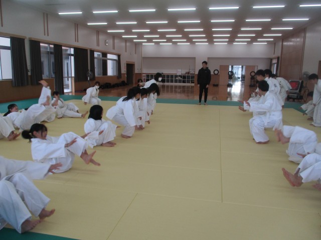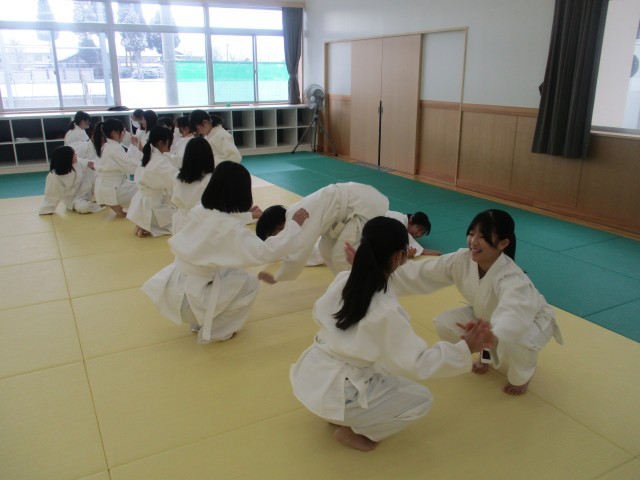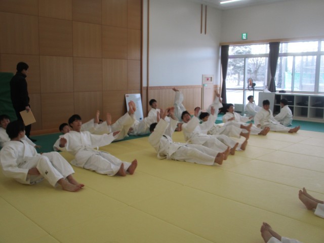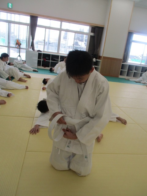1月21日(水) 1年生 保健体育(柔道) 公開日 2026/01/21 更新日 2026/01/21 1年生 保健体育の授業では、『柔道』が始まりました。初めての授業では、柔道着の着方・たたみ方・帯の締め方を学習しました。2回目の授業では、いろいろな『受け身』を学んでいます。頭を畳にぶつけないように注意しながら、受け身の形を練習しています。柔道着が乱れたら、自分で帯を締め直して柔道着を整えています。 +7