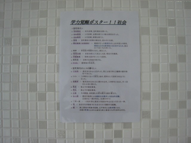 3年生の学年生徒会が、「 学力覚醒ポスター」を作成し、学年トイレに掲示してありました。