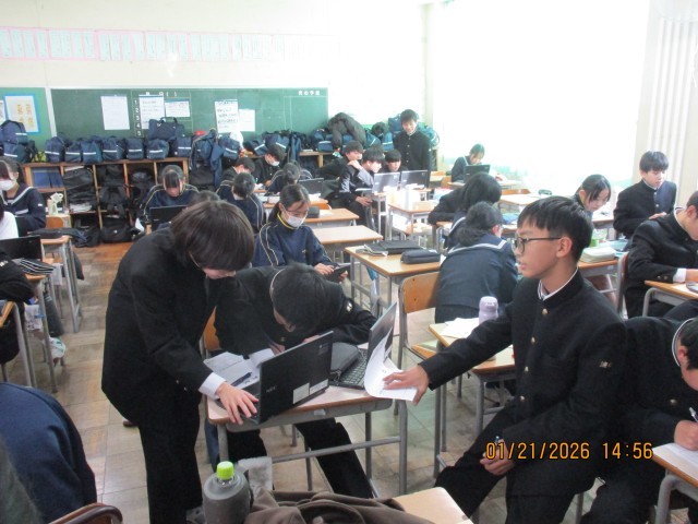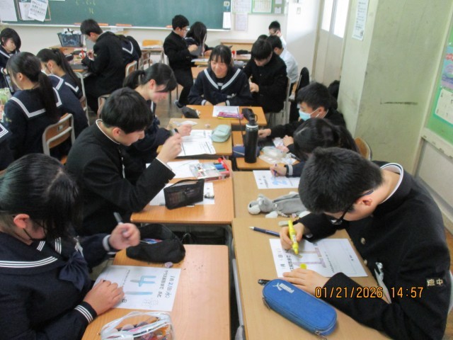 1年生は、3学期終業式までのカウントダウンカレンダーを作成しています。この時期になると、クラスメイトと過ごしてきた日々を思いながら、残りの一日一日を大切にしていきたいなという思いが強くなります。一人一人自分の担当ページに思いを込めて、作成しています。