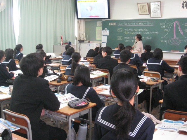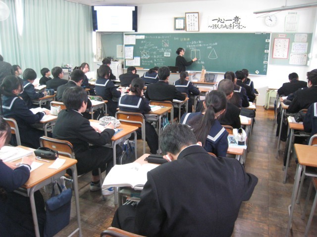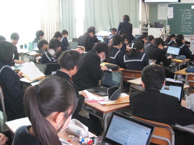 写真は、上から1組数学、2組理科、3組社会、4組数学、5組理科、6組英語、7組社会の授業の様子です。