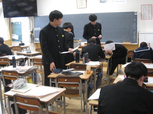 1月28日(水) 2年生 授業風景 公開日 2026/01/28 更新日 2026/01/28 2年生 今日の2年生の6限目の授業の様子です。 6組の英語では、パフォーマンス(スピーキング)テストを行っていました。 教室内では、テストの順番が来るまで友達と練習を繰り返し行っていました。 写真は、上から1組国語、2組理科、3組・4組保健体育、5組社会、6組英語、7組数学、8組社会の授業の様子です。 +6