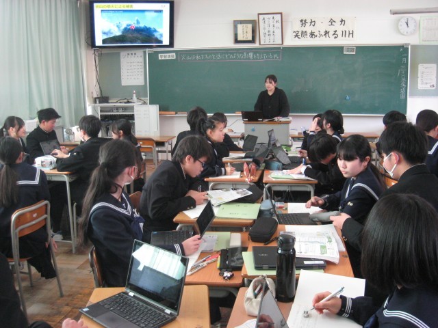 1月30日(金) 1年生 授業風景 公開日 2026/01/30 更新日 2026/01/30 1年生 今日の1年生の3限目の授業の様子です。 今週最後の授業は、今月最後の授業です。 来週は新入生説明会があり、1年生にとっては後輩が入学してくるのを楽しみにしています。 授業に臨む姿勢も中学生らしい、先輩らしい雰囲気が表れています。 写真は、上から1組理科、2組英語、3組数学、4組英語、5組美術、6組国語、7組国語の授業の様子です。 +4