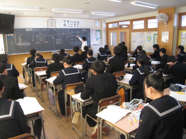 写真は、上から1組数学、2組英語、3組・4組保健体育、5組英語、7組国語、7組英語の授業の様子です。