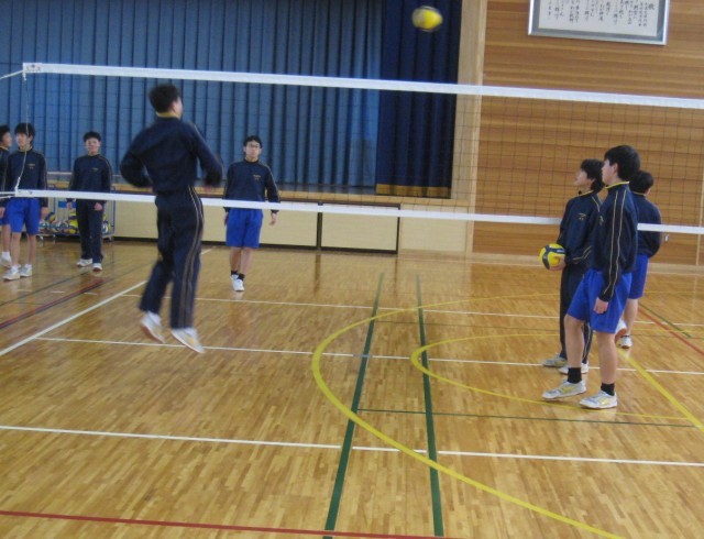 2年3・4組の男子の保健体育では、バレーボールに取り組んでいます。