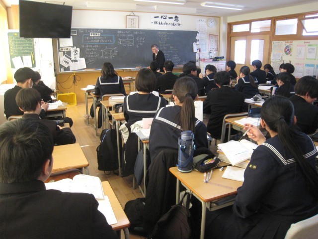 1月30日(金) 3年生 授業風景 公開日 2026/01/30 更新日 2026/01/30 3年生 今日の3年生の3限目の授業の様子です。 いよいよ来週は、私立一般入試です。 この週末しっかりと家庭学習に取り組むとともに、会場校までの行き方等の下見をしておきましょう! 写真は、上から1組数学、2組技術、3組家庭科、4組英語、5組美術、6組理科、7組数学、8組英語の授業の様子です。 +5