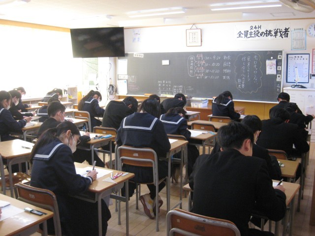 2月5日(木) 2年生 確認テスト 公開日 2026/02/05 更新日 2026/02/05 2年生 今日の2年生の4限目の英語のテストの様子です。 2年生は、1年後自分たちが受験をしていることを想像しているかのように、受験生のように取り組んでいました。 写真は、上から1組から8組のテストの様子です。 +5