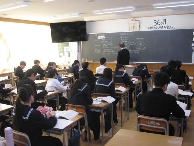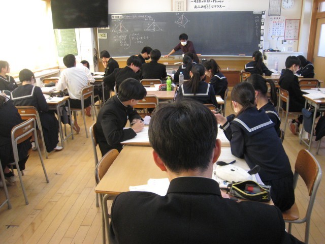 3年生は、昨日県立推薦入試があり空席も多かったのですが、今日はクラス全員がそろって授業を受けています