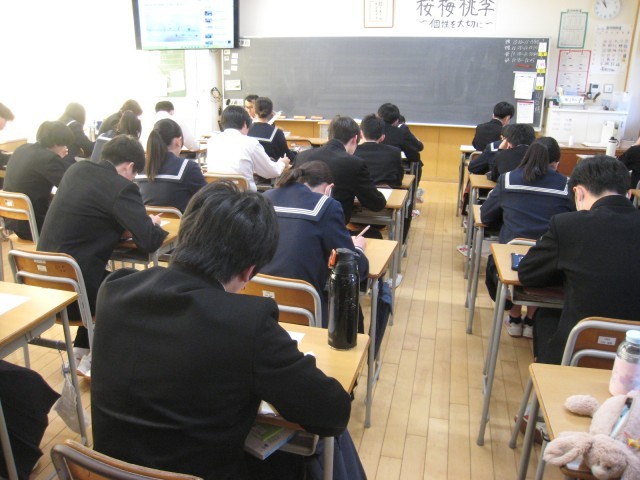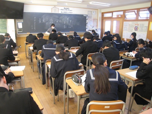 3年生は、2限目まで学年末考査を行い、3限目から通常の授業でした