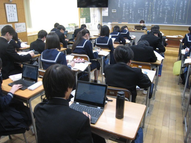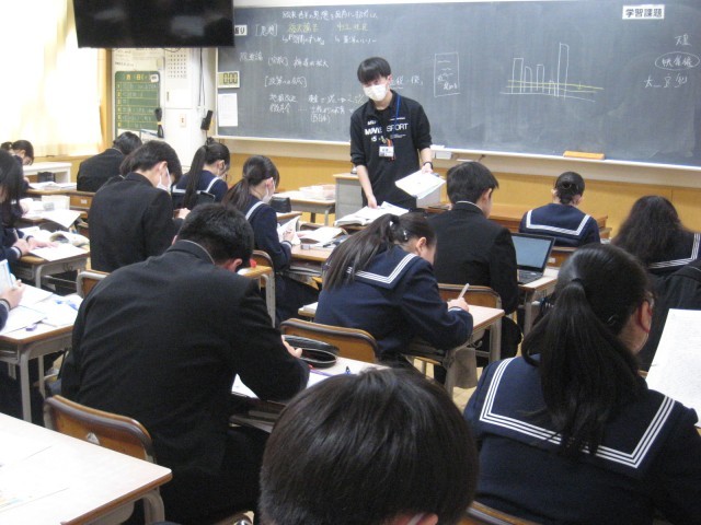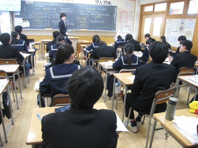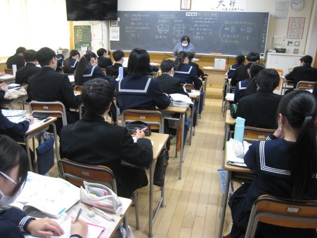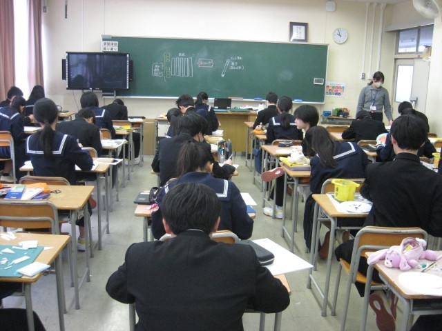 来週の学年末考査に向けて、プリントを使い2年生のまとめをしている授業もありました。