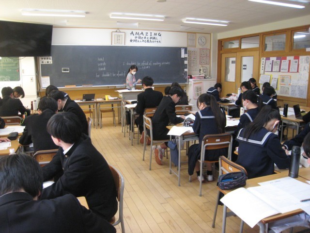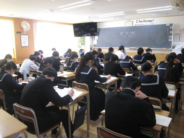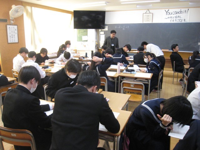 本日から1・2年生は学年末考査が始まりましたが、3年生の教室に入っても、学年末考査を行っているのか…と思うくらい入試対策プリントに集中して取り組んでいました。