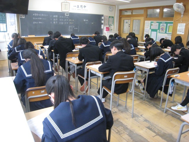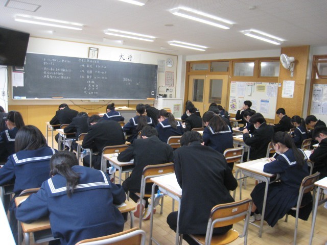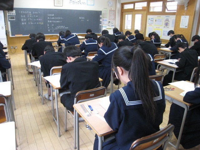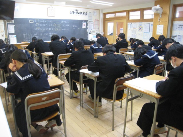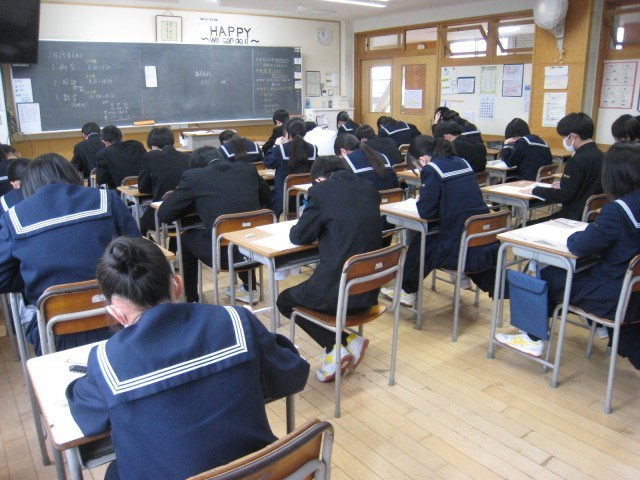 2月25日(水) 2年生 学年末考査2日目 公開日 2026/02/25 更新日 2026/02/25 2年生 今日の2年生の3限目の数学の学年末テストの様子です。 写真は、上から1組から8組のテストの様子です。 +5