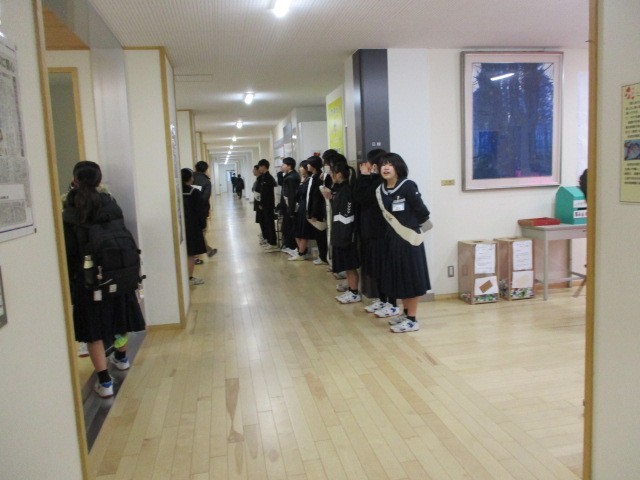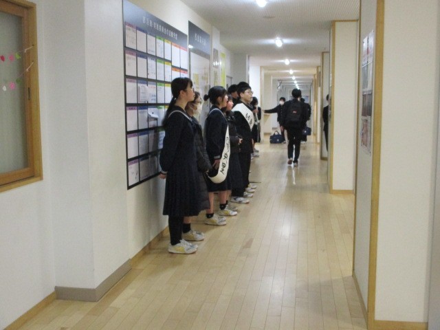 今朝の登校時は雨になりました。そのため選挙活動は校舎内で行いました。本日の下校完了時間は15:55です。