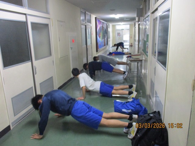 本日はあいにくの雨で、肌寒い一日となりました。部活動も廊下等を利用して、トレーニングをしている部も多いようです。