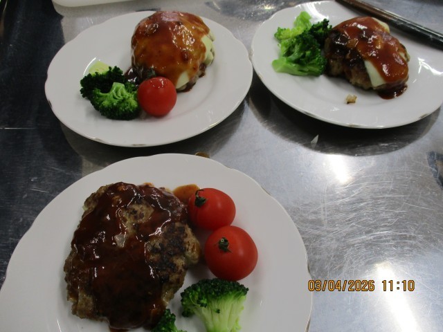 味も見た目も満足するハンバーグができあがりました。