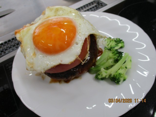 1年生の先頭をきって、1年7組が調理実習で「五感が喜ぶハンバーグ」を作りました。