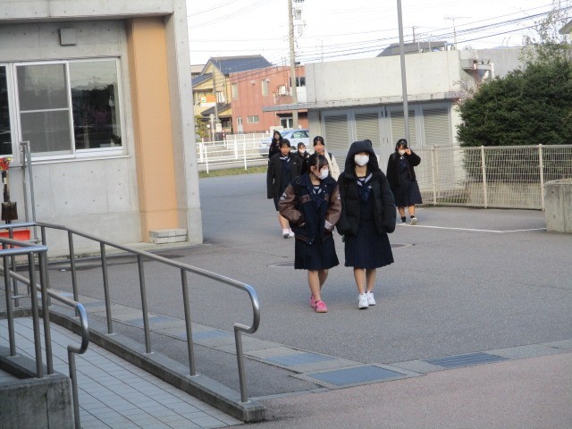 今朝の登校時は曇りになりました。今日は放課後に部活動送別会、放課後カフェが行われます。本日の下校完了時間は16:00です。