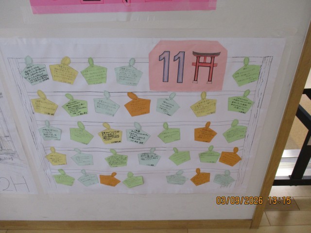 3年生に向けて1年生からの卒業メッセージが廊下を飾っています。