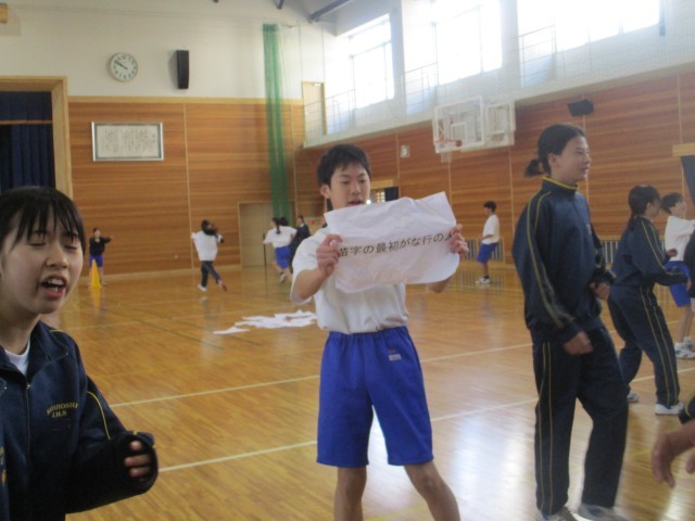 3月17日(火) 1年生 学年レクリエーション③(借りもの競争)