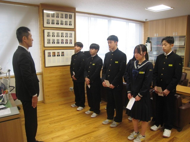 3月に全国大会への出場を決めた選手たちに、教育振興会からの激励費を手渡しました。