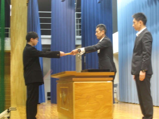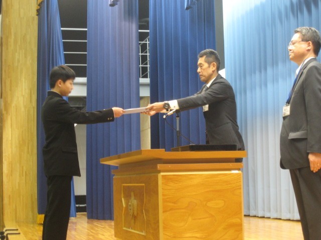 1、2年生の代表生徒が修了証を受け取りました。各学年、姿勢を正し、凛とした雰囲気の中で修了証授与式を行いました。