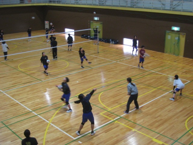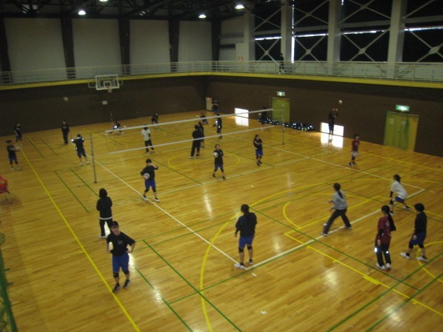 スポーツプラザの体育館では、バレーボール部が元気よく活動しています。日頃の部活動より、じっくりと練習に取り組めますね。