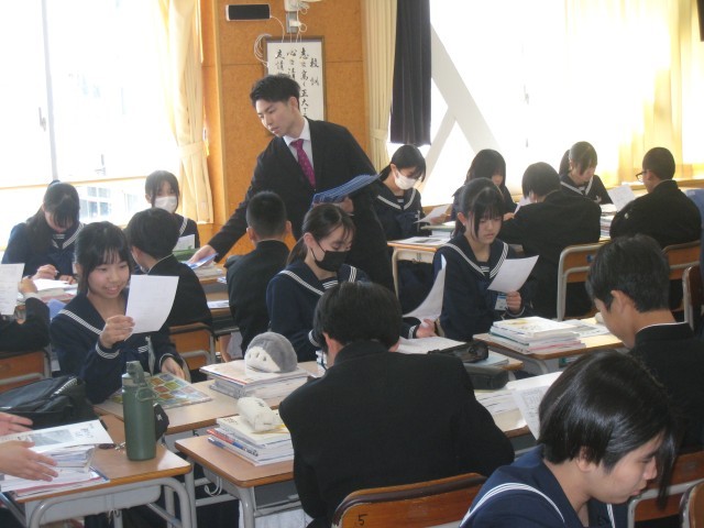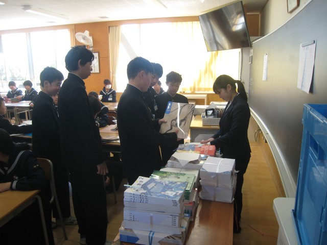 着任式・始業式が行われ、新年度の担当教職員の発表がありました。続いて、新しいクラスで、新しい担任との学活が行われました。教科書が給付され、担任から自己紹介や学級づくりの願いなどが話されました。