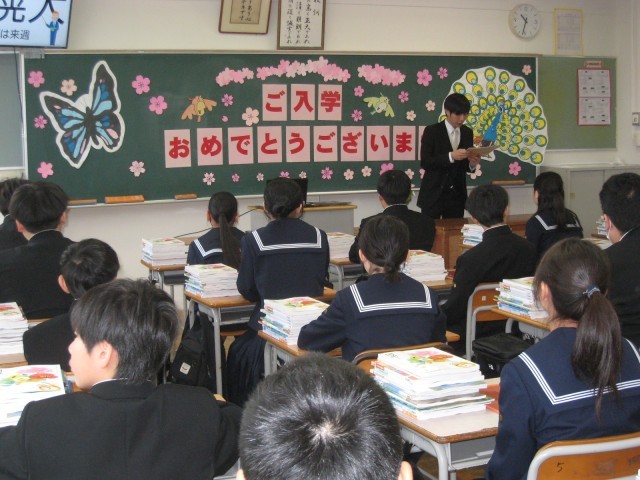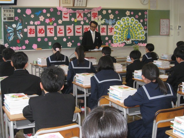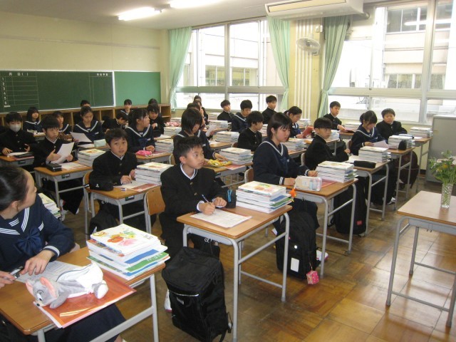 入学式後、新しい担任との出会いがありました。新しい教科書を受け取ったり、来週からの予定を聞いたりしました。真剣な様子で話を聞いていました。来週からいよいよ本格的に始まる中学校生活、人との関わりをとおして、充実した学校生活を送ってほしいと思います。