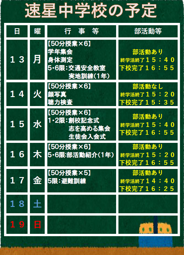 4月13日(月)からの予定