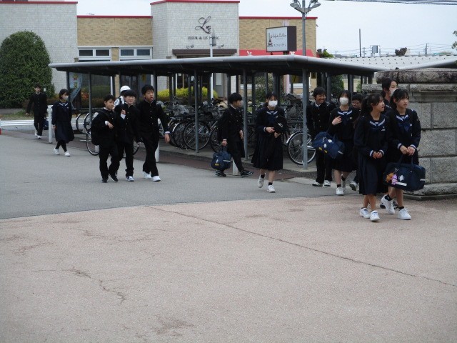 今朝の登校時は曇りになりました。今日は5、6限に1年生に向けた部活動紹介を行います。本日の下校完了時間は16:55です。