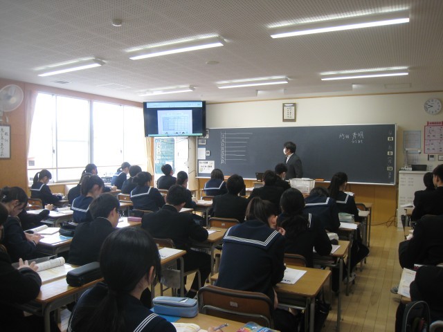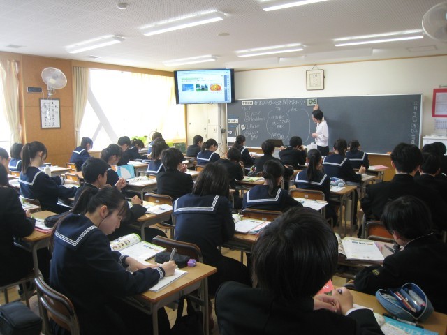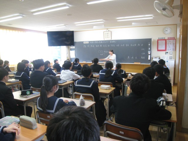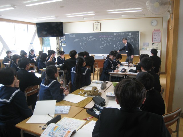 2年生2限目の授業の様子です。授業者の問いかけに元気に反応していました。これからも楽しく学んでいきましょう。写真は順に1組社会、2組数学、3組数学、4組家庭、5組体育、6組英語、7組理科の様子です。