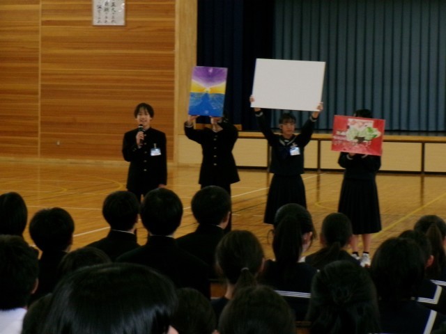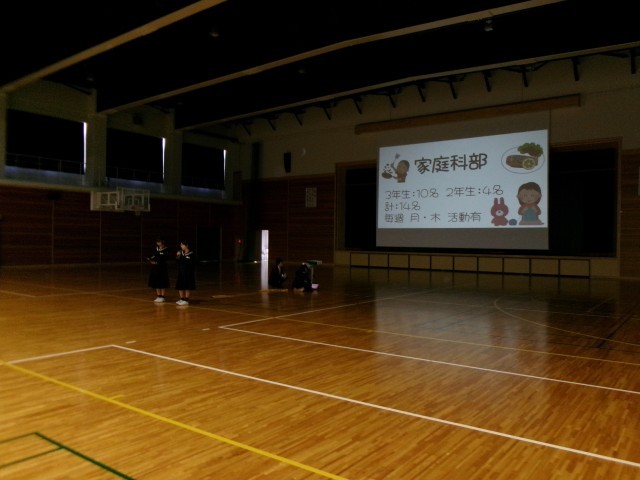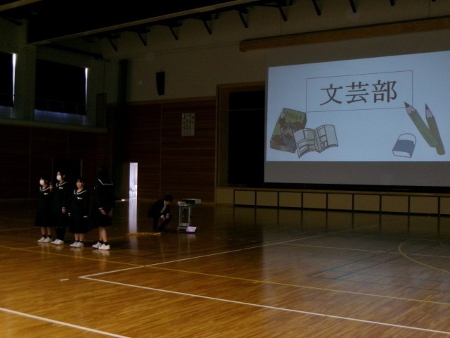 部活動紹介の様子です。本校はたくさんの部活動があります。ぜひ、本気で打ち込めるような部活動を見つけましょう。
