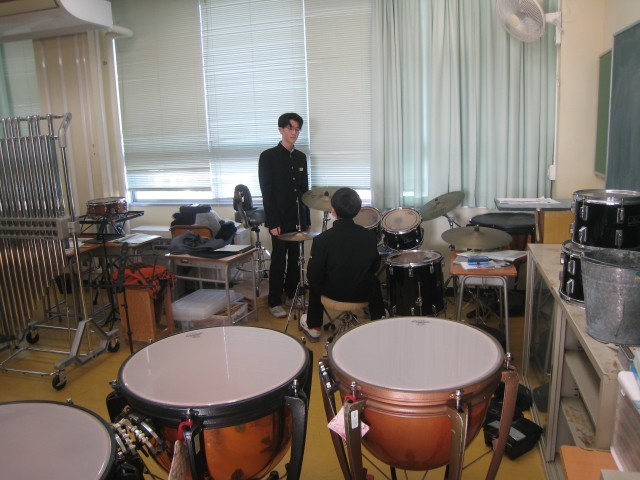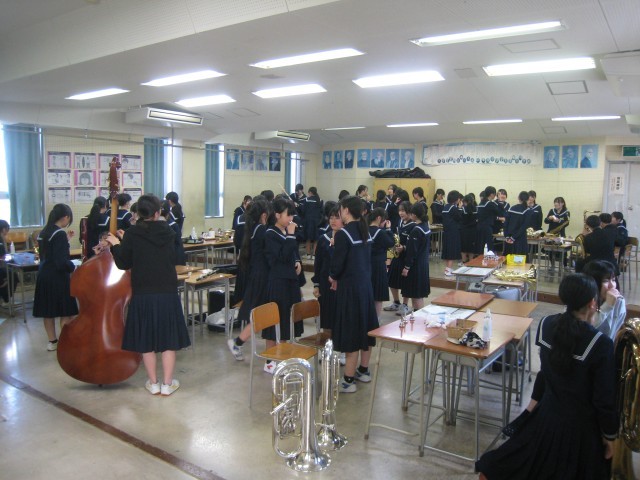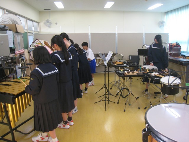 放課後の部活動の様子です。たくさんの一年生が部活動を見学していました。早くも先輩が後輩に優しく教えていました。