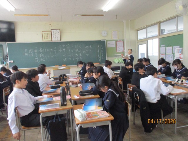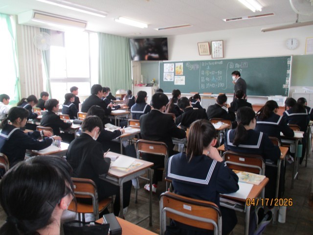 1年生 4限目の授業の様子です。真剣に素直に取り組む様子が素敵でした。上から1組技術、2組英語、3組国語、4組国語、5組理科、6組数学、7組体育、8組数学、9組美術の様子です。