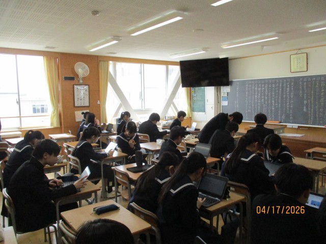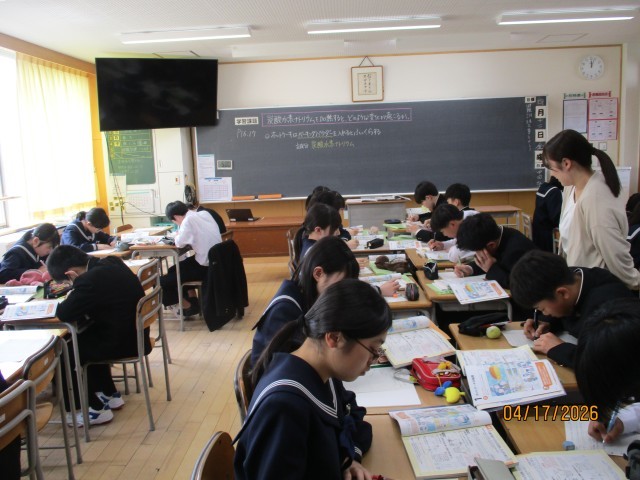 2年生の授業の様子、3年生の学活の様子です。2年生は生き生きと授業に取り組んでいました。3年生は修学旅行の話し合いをしたり、京都について調べたりしていました。写真は上から21H技術、22H社会、23英語、24H理科、25H理科、26H体育、27H国語、3年学活の様子(2クラス分)です。