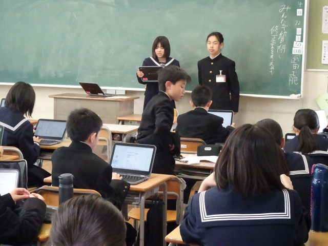 1学年初めての学級討議です。学級代表が中心となって話し合いを行いました。