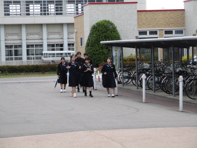 今朝の登校時は曇りになりました。今日は3年生が全国学力・学習状況調査を行います。本日の下校完了時間は16:55です。