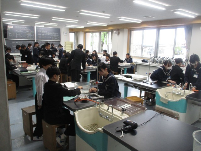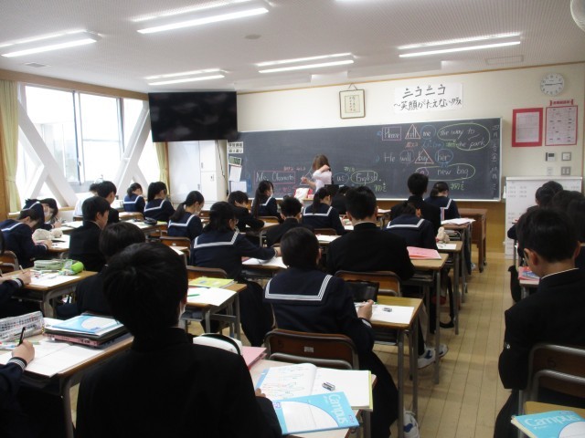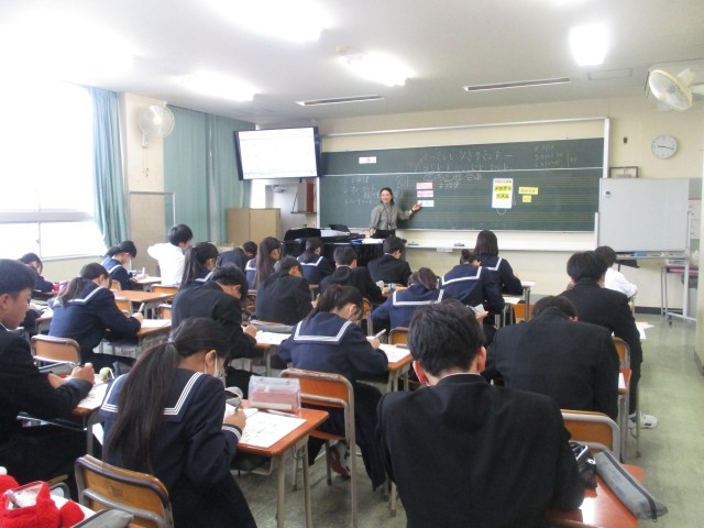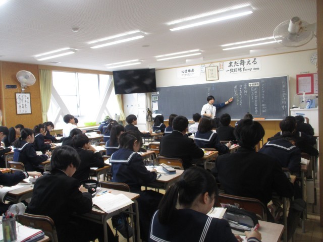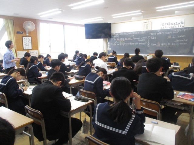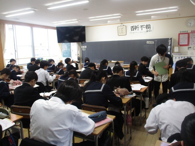 2年生の授業の様子です。英語では、黒板の内容をもれなく写そうと、色ペンを使い一生懸命取り組んでいました。写真は上から21H国語、22H英語、23H理科、24H音楽、25H英語、26H国語、27H理科の様子です。