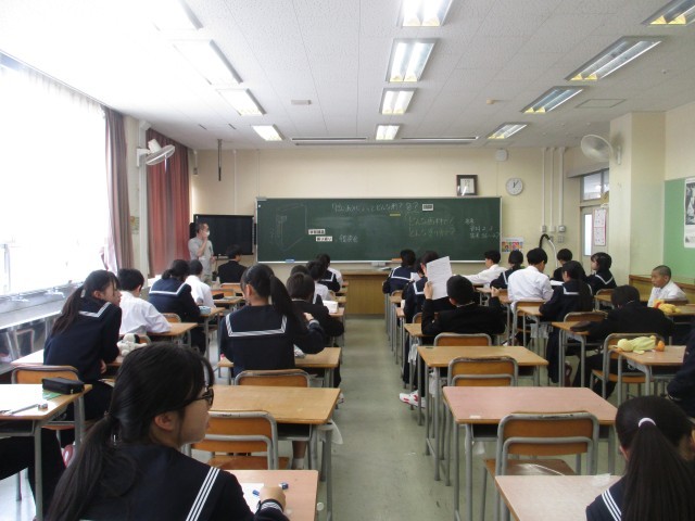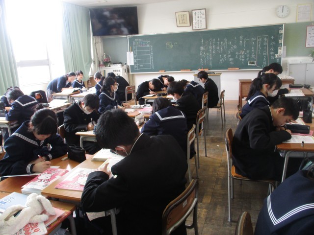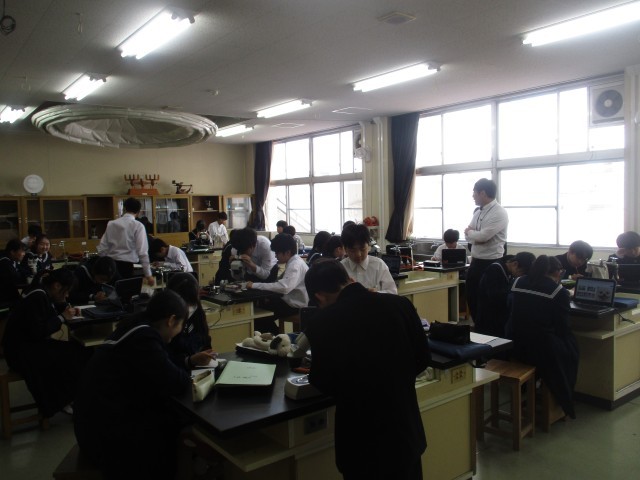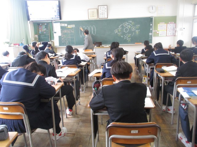 1年生の4限の様子です。理科では、理科室で顕微鏡をのぞいていました。写真は上から11H理科、12H社会、13H技術、14H数学、15H体育、16H国語、17H美術、18H音楽、19H理科の様子です。