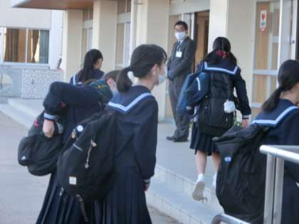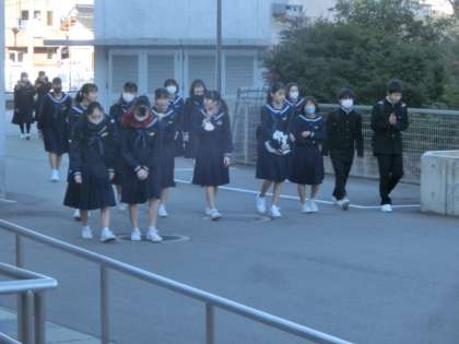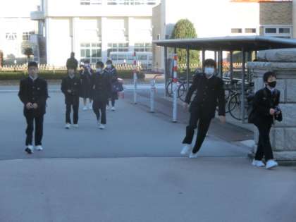 今週最初の登校は、日が差していたとはいえ空気がピリリとしていました。生徒たちは3連休で英気を養い、元気に登校しました。