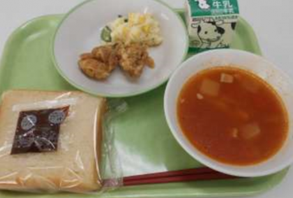 食パン 冬野菜のミネストローネ ポテトサラダ フライドチキン チョコソース