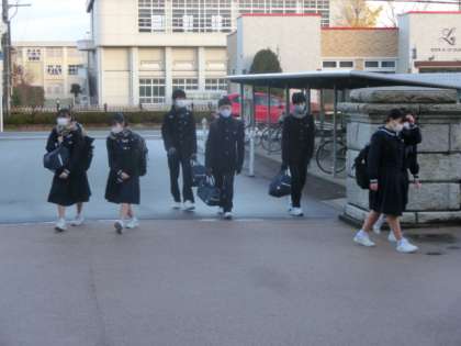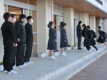 久しぶりの青空。生徒たちは元気に登校しました。玄関では、生活向上委員会の3年生が、爽やかな挨拶で全校生徒を出迎えました。