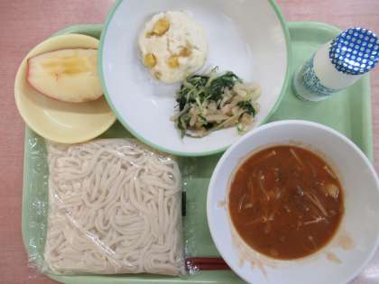 大根サラダは、シャキシャキの食感とワカメがいい塩味を出しました。今日は、月に1度の牛乳じゃない日で、飲むヨーグルトでした。