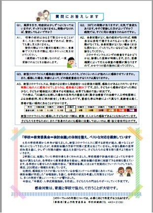 新型コロナウイルス感染症対策 保護者向けリーフレットVOL.7が配布されました。