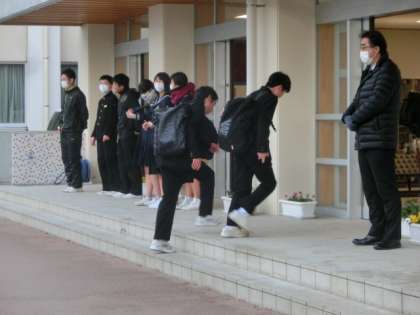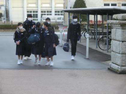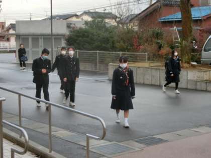 今週最後の登校は、温かい日となりました。生徒たちのテンションも、やや高めでした。玄関では、生活向上委員会の3年生が、爽やかな挨拶で全校生徒を出迎えました。