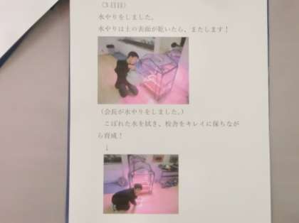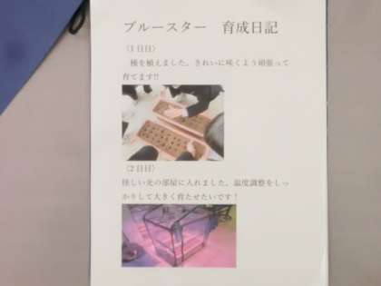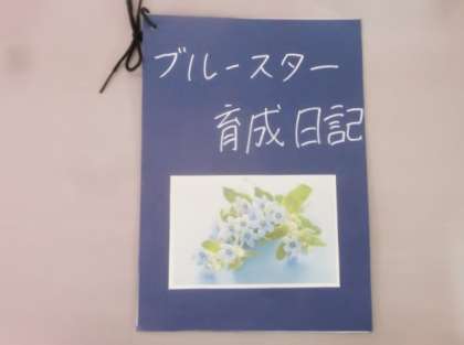玄関のブルースター栽培ハウスの横のテーブルの上に「ブルースター育成日記」が置いてあります。