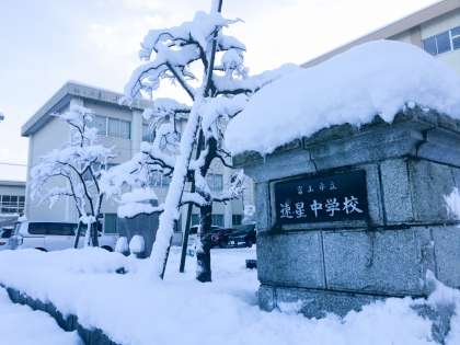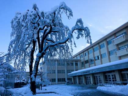 今回の寒気で、本校のシンボルツリーである「しだれ梅」や「しだれ桜」も「雪の花」を咲かせていました。