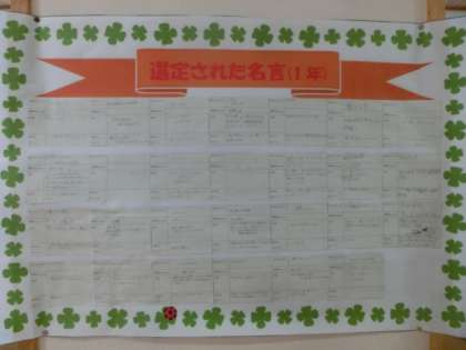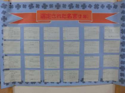 図書委員会が先日作成した「(図書室の本から)選定された名言」を、生徒玄関の柱に掲示しました。