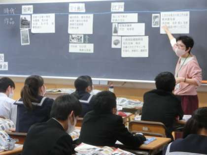 中段は、2年の美術です。国内の代表的な作品を時代ごとに整理しました。