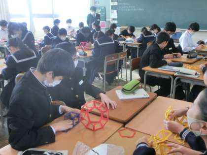 上段は、1年の数学です。正多面体の特徴について学習しました。